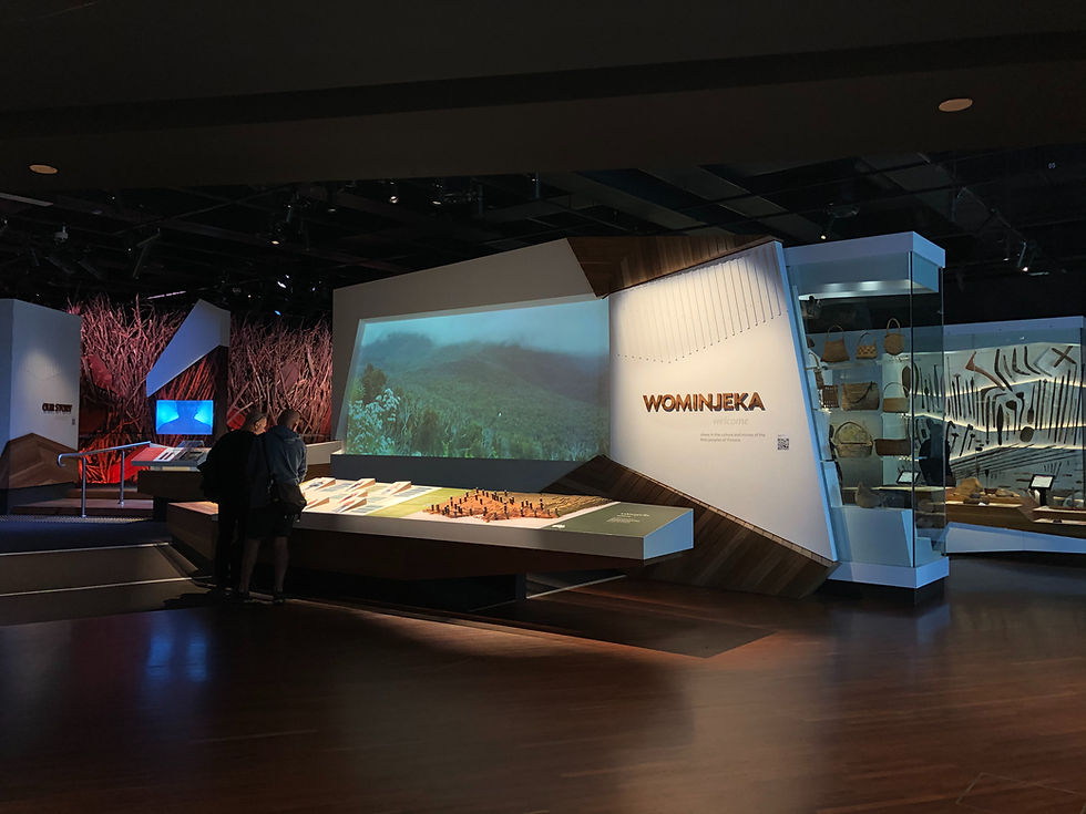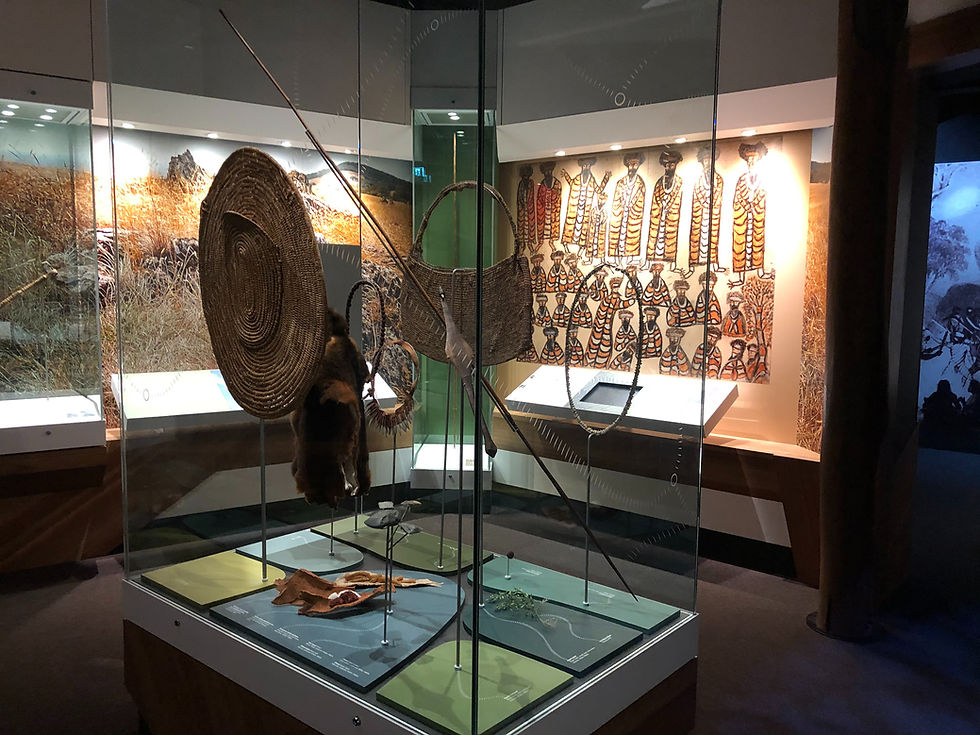 This area of the museum forms the Bunjilaka Aboriginal Cultural Centre and highlights the traditional owners of the Melbourne area - the Boonwurrung and the Woi Wurrung language groups of the wider Kulin Nation. The history and organization of the Aboriginal nations was something that neither Matt nor I were very familiar with and this exhibit was incredibly well laid out and patient as it guided us through the lived experience for these groups.