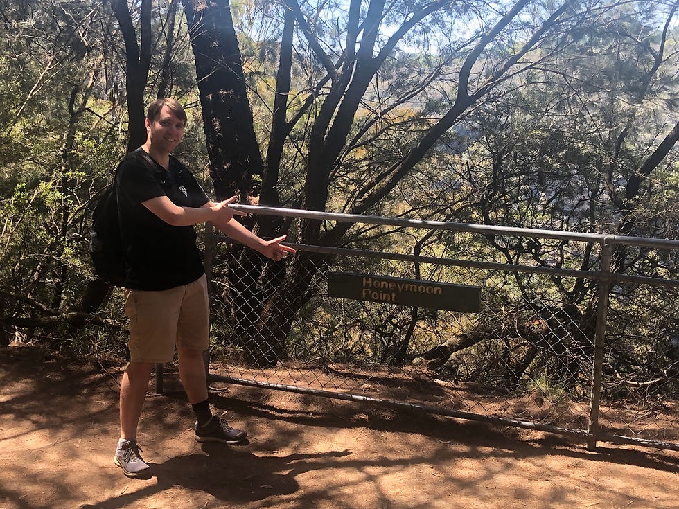 When we arrived in Katoomba, we made a bee line to the Coles supermarket just off the main drag to pick up some snacks for our hike. In retrospect, it would have been better to grab these in Sydney as the selection wasn't as varied as we'd hoped. We grabbed some nuts and water but luckily, there was a little cafe next door where we were able to grab a simple pasta salad and sandwich for our lunch so it all worked out fine. Once we were ready, we headed down to the first of many overlooks and wow, the Blue Mountains were stunning from every angle!